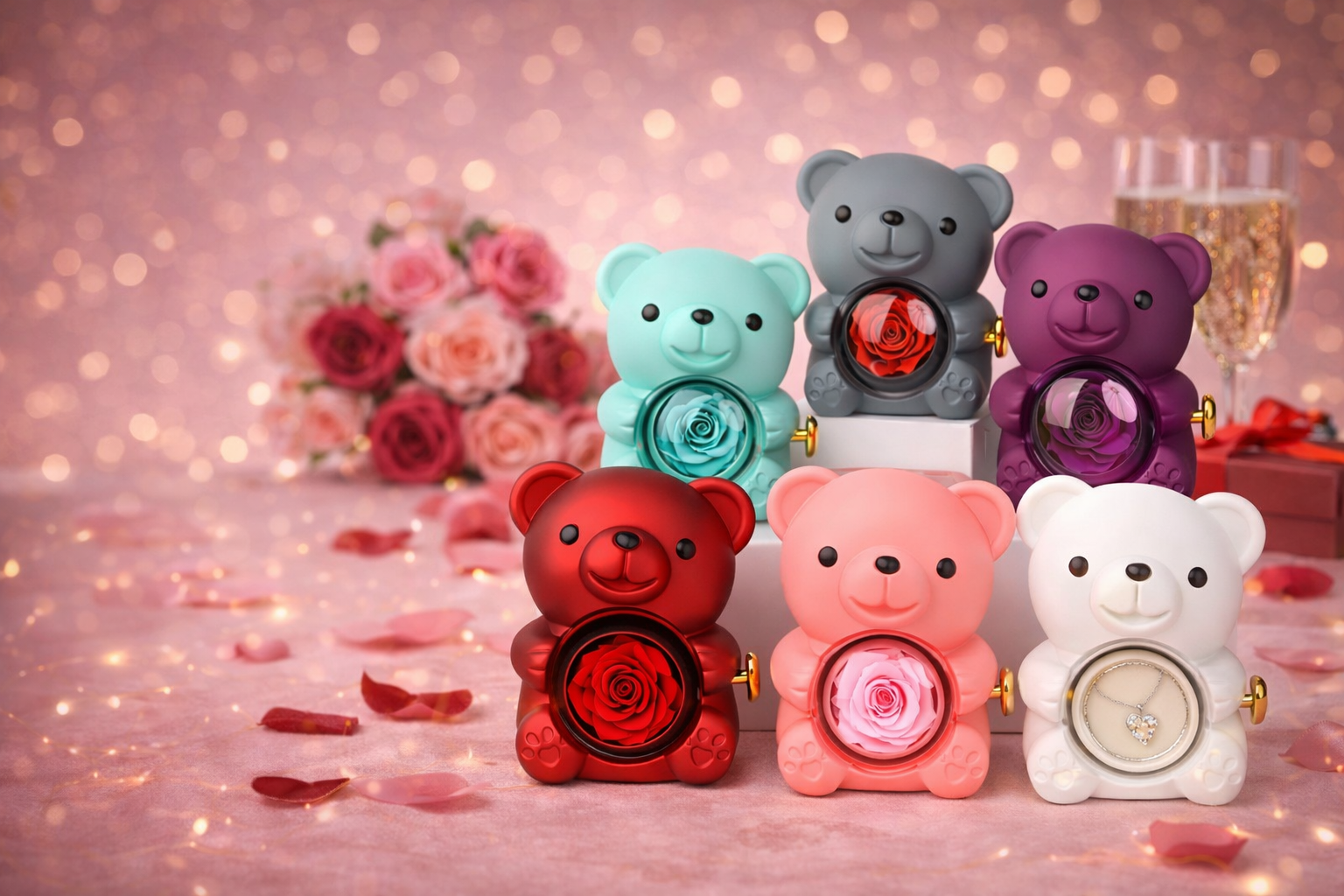 Udělej radost své polovičce a pořiď jí našeho jedinečný dárkový box medvídka.